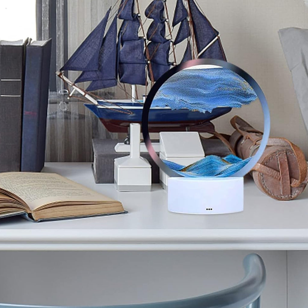 5 Color Light Moving Sand Art Picture Round Glass 3D Deep Sea Sands cape in Motion Display Flowing Sand Frame, Children's Large Desktop Art Toys, Home & Office Desktop Decorations (1 Pc)